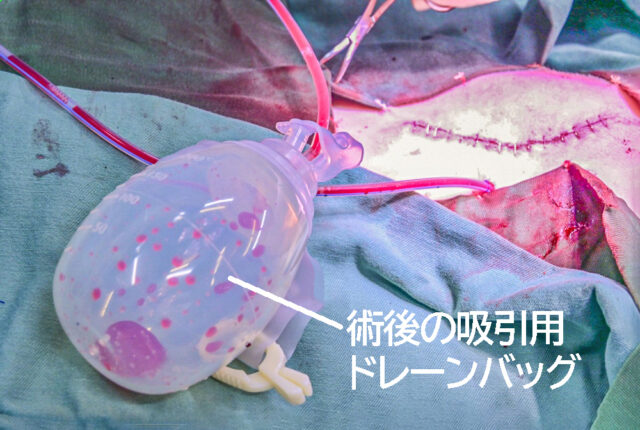 お腹にはドレーンを設置して腹腔内に溜まる漿液などを回収するように努めています。