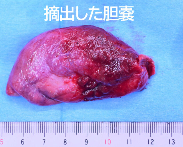 痛み止めや抗生物質などによる治療を開始しましたが、胆嚢の拡張と炎症の強さから、破裂の危険性が高いと判断され、胆嚢摘出手術をご提案致しました。