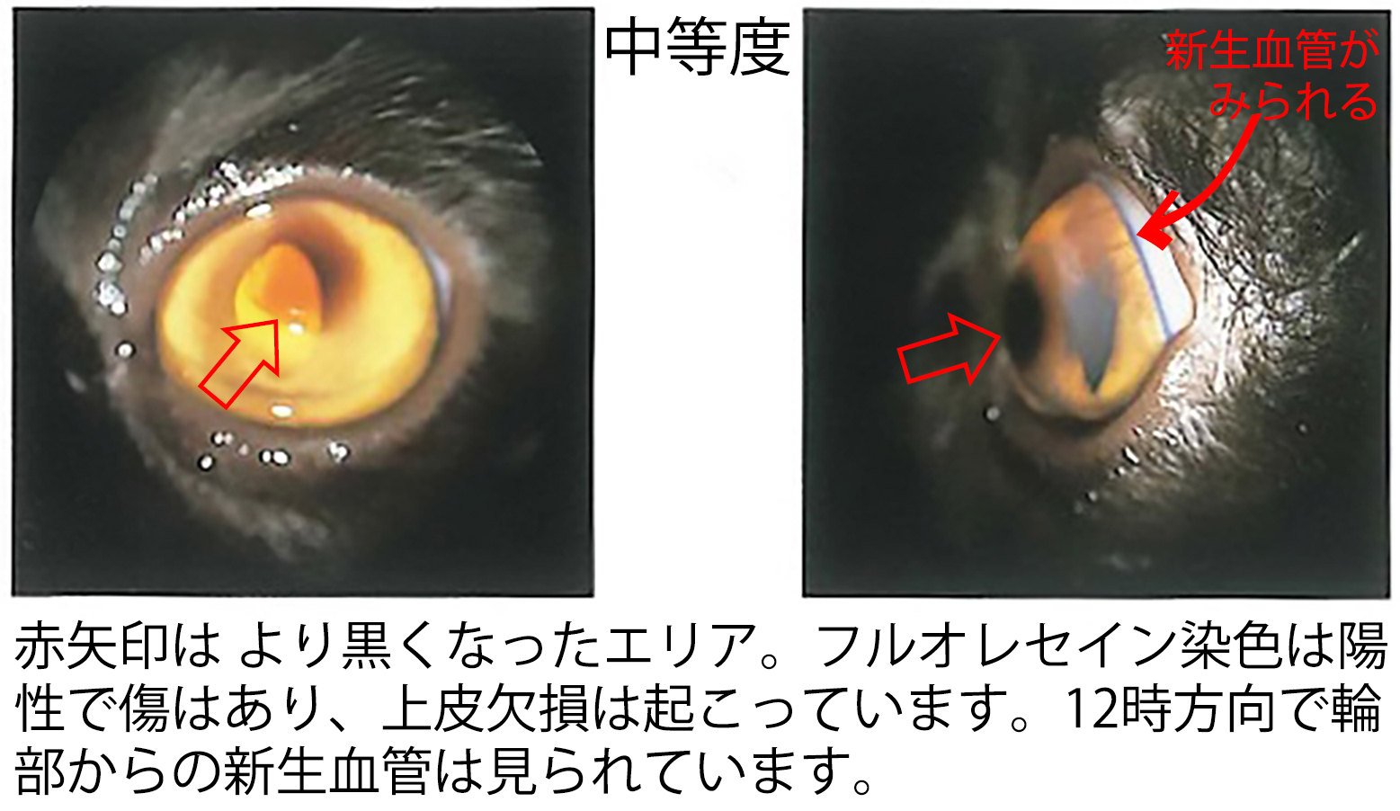 この段階では上皮は保たれており、疼痛や明らかな違和感はほとんど認められませんでした。■ 中等度