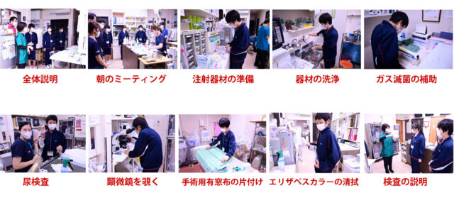 3日目最後の日は、聴診、各種検査(眼圧、レントゲン検査、血圧、心電図検査など)の立ち会い、器具の洗浄、院内清掃なども体験してもらいました。3日間無事に終えることができ、良かったと思います。