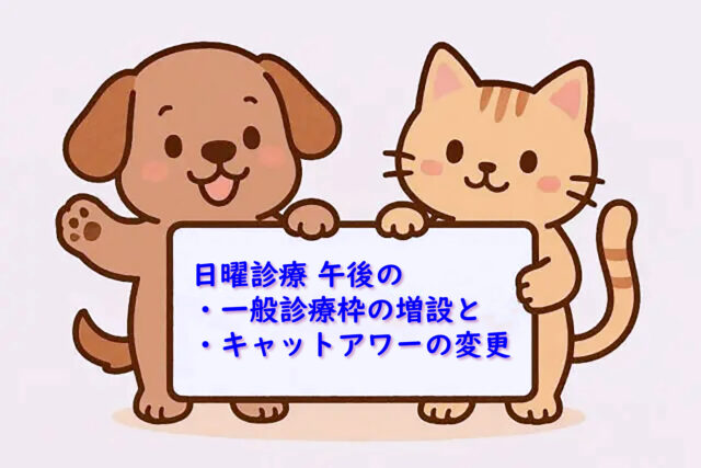 12月、1月の日曜日午後の診療について、一般診療枠の増設と猫のための予約診療(キャットアワー)の変更を行います。